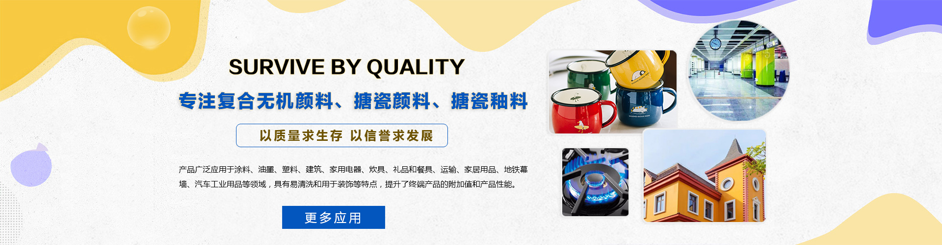 本公司生產(chǎn)的搪瓷釉料,廣泛應(yīng)用于日用搪瓷、熱水器內(nèi)膽、標(biāo)牌、墻面裝飾板、爐面板、衛(wèi)浴、飲具等領(lǐng)域......